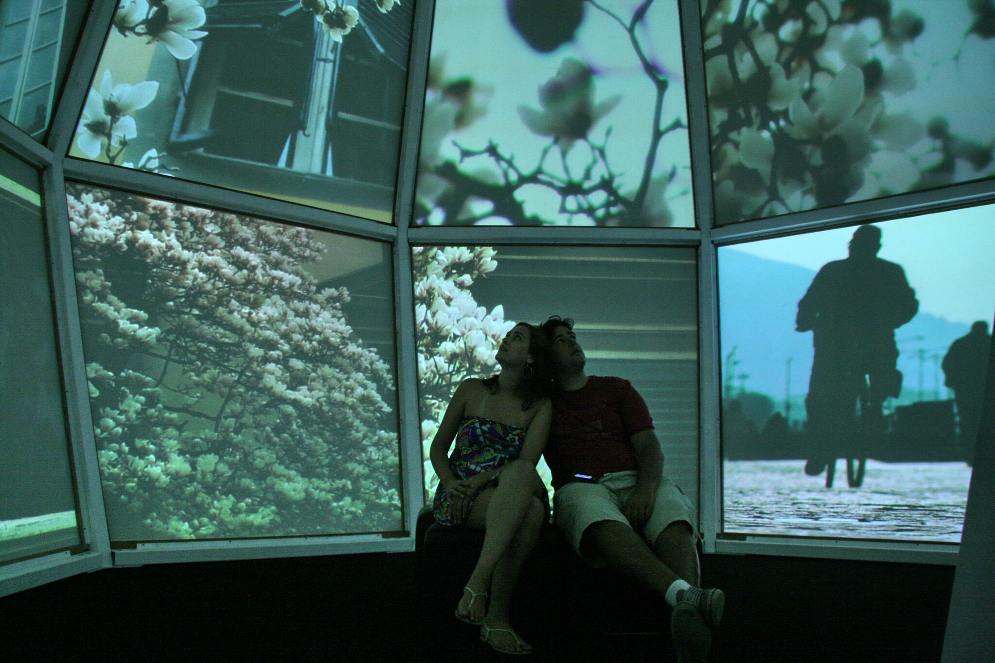 Polyhedron, with projection of images on each of its 15 faces.